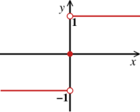 The sign function or signum function extracts the sign of a real number, by mapping the set of real numbers to the set of the three reals [math]\displaystyle{ \{-1,\; 0,\; 1\}. }[/math] It can be defined as follows:[1] [math]\displaystyle{ \begin{align} \sgn : {} & \Reals \to \{-1, 0, 1\} \\ & x \mapsto \sgn(x) = \begin{cases} -1 & \text{if } x \lt 0, \\ ~~\, 0 & \text{if } x = 0, \\ ~~\, 1 & \text{if } x \gt 0. \end{cases} \end{align} }[/math] Thus sgn(x) is 1 when x is positive, and sgn(x) is −1 when x is negative. For non-zero values of x, this function can also be defined by the formula [math]\displaystyle{ \sgn(x) = \frac{x}{|x|} = \frac{|x|}{x}, }[/math] where |x| is the absolute value of x.