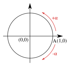 In many contexts, it is common to associate a sign with the measure of an angle, particularly an oriented angle or an angle of rotation. In such a situation, the sign indicates whether the angle is in the clockwise or counterclockwise direction. Though different conventions can be used, it is common in mathematics to have counterclockwise angles count as positive, and clockwise angles count as negative.[3]