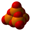 Upon heating orthophosphoric acid, condensation of the phosphoric units can be induced by driving off the water formed from condensation. When one molecule of water has been removed for each two molecules of phosphoric acid, the result is pyrophosphoric acid (H4P2O7). When an average of one molecule of water per phosphoric unit has been driven off, the resulting substance is a glassy solid having an empirical formula of HPO3 and is called metaphosphoric acid.[1] Metaphosphoric acid is a singly anhydrous version of orthophosphoic acid and is sometimes used as a water- or moisture-absorbing reagent. Further dehydrating is very difficult and can only be accomplished by means of an extremely strong desiccant (and not by heating alone). It produces phosphoric anhydride which has an empirical formula P2O5, although an actual molecule has a chemical formula of P4O10. Phosphoric anhydride is a solid which is very strongly moisture-absorbing and is used as a desiccant.