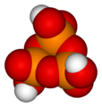 Phosphoric acid, also known as orthophosphoric acid or phosphoric(V) acid, is a mineral (inorganic) acid having the chemical formula H3PO4. Alternatively, orthophosphoric acid molecules can combine with themselves to form a variety of compounds referred to as phosphoric acids in a more general way. The term "phosphoric acid" can also refer to a chemical or reagent consisting of phosphoric acids, usually mostly orthophosphoric acid.