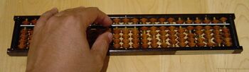 The soroban is still taught in some primary schools as a way to visualize and grapple with mathematical concepts. The practice of soroban includes the teacher reciting a string of numbers (addition, subtraction, multiplication, and division) in a song-like manner where at the end, the answer is given by the teacher. This helps train the ability to follow the tempo given by the teacher while remaining calm and accurate. In this way, it reflects on a fundamental aspect of Japanese culture of practicing meditative repetition in every aspect of life.[3] Primary school students often bring two soroban to class, one with the modern configuration and the one having the older configuration of one heavenly bead and five earth beads.
