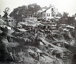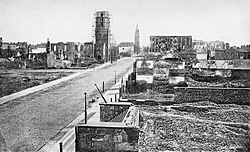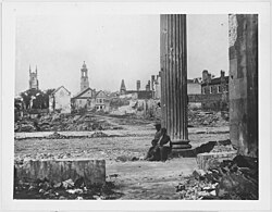 The later years, however, saw Grant's relentless Overland Campaign in Virginia as well as Sherman's infamous March to the Sea in which he torched Atlanta and carved a path of destruction through Georgia and South Carolina. Sherman operated behind enemy lines without relying on supply trains, meaning that his soldiers were extremely thorough at stripping the Southern countryside of anything useful.[16] His tactics made much of the South unlivable; of the many hundreds of thousands of slaves he freed, as many as 10,000 ended up starving to death in the newly-created wasteland.[16] It wasn't just Sherman; Sheridan's forces left a ninety-mile stretch of the Shenandoah Valley completely barren.[17] Meanwhile, Confederate-controlled cities throughout the war saw overcrowding from refugees, food shortages, and economic collapse.[17]
