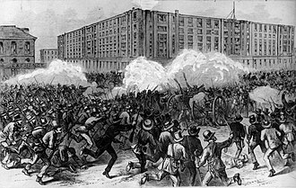 In 1874 a new white terrorist organization formed, calling itself the White League. Unlike the clandestine Klan, the White League felt confident enough to operate openly across much of the Deep South.[79] The White League became responsible for a dizzying array of murders, massacres, and other crimes. By September of that same year, the White League had become powerful enough to launch an armed insurrection against a state government. 5,000 White Leaguers attacked New Orleans and managed to occupy the statehouse, armory, and downtown for three days before disbanding under the threat of federal intervention.[80] The White League was ultimately successful in suppressing Republican votes, and Louisiana turned over to the Democrats in 1876.
