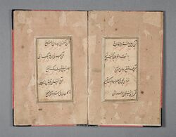 Devotion to Muhammad is the strongest practice within Sufism.[107] Sufis have historically revered Muhammad as the prime personality of spiritual greatness. The Sufi poet Saadi Shirazi stated, "He who chooses a path contrary to that of the prophet shall never reach the destination. O Saadi, do not think that one can treat that way of purity except in the wake of the chosen one."[108] Rumi attributes his self-control and abstinence from worldly desires as qualities attained by him through the guidance of Muhammad. Rumi states, "I 'sewed' my two eyes shut from [desires for] this world and the next – this I learned from Muhammad."[109] Ibn Arabi regards Muhammad as the greatest man and states, "Muhammad's wisdom is uniqueness (fardiya) because he is the most perfect existent creature of this human species. For this reason, the command began with him and was sealed with him. He was a Prophet while Adam was between water and clay, and his elemental structure is the Seal of the Prophets."[110] Attar of Nishapur claimed that he praised Muhammad in such a manner that was not done before by any poet, in his book the Ilahi-nama.[111] Fariduddin Attar stated, "Muhammad is the exemplar to both worlds, the guide of the descendants of Adam. He is the sun of creation, the moon of the celestial spheres, the all-seeing eye...The seven heavens and the eight gardens of paradise were created for him; he is both the eye and the light in the light of our eyes."[112] Sufis have historically stressed the importance of Muhammad's perfection and his ability to intercede. The persona of Muhammad has historically been and remains an integral and critical aspect of Sufi belief and practice.[107] Bayazid Bastami is recorded to have been so devoted to the sunnah of Muhammad that he refused to eat a watermelon because he could not establish that Muhammad ever ate one.[113]