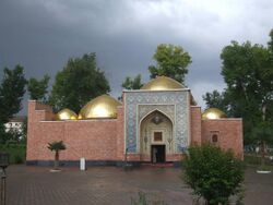 A dargah (Persian: درگاه dargâh or درگه dargah, also in Punjabi and Urdu) is a shrine built over the grave of a revered religious figure, often a Sufi saint or dervish. Sufis often visit the shrine for ziyarat, a term associated with religious visits and pilgrimages. Dargahs are often associated with Sufi eating and meeting rooms and hostels, called khanqah or hospices. They usually include a mosque, meeting rooms, Islamic religious schools (madrassas), residences for a teacher or caretaker, hospitals, and other buildings for community purposes.