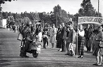In response to persistent Estonian disloyalty, the Soviet Union launched its version of the Russification policies, sending many ethnic Russians to Estonia in the hopes of turning it into a Russian colony.[64] The Soviets also turned much of Estonia into a fortified military outpost against the west.[65]
