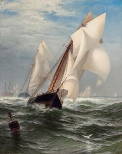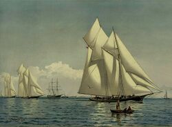 On August 8, 1870, the international 1870 America's Cup was the first America's Cup to be hosted in the United States at New York Harbor. Jacob B. Voorhis with his American schooner Madeleine was in the competition. The course started from the Staten Island N.Y.Y.C anchorage down through the Narrows to the S.W. Split buoy, across to the Sandy Hook lightship and return to Staten Island. The race was won by the Franklin Osgood's Magic with the Madeleine finishing in 13th place.[4][5]