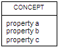 Sometimes the needs exist to assign properties to concepts. Properties are written in lower case, under the concept name, as is illustrated in Figure 11.
