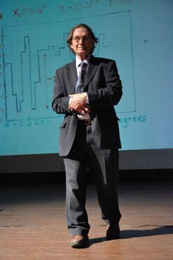Sir Roger PenroseOM FRS HonFInstP (born 8 August 1931)[1] is an English mathematician, mathematical physicist, philosopher of science and Nobel Laureate in Physics.[2] He is Emeritus Rouse Ball Professor of Mathematics in the University of Oxford, an emeritus fellow of Wadham College, Oxford, and an honorary fellow of St John's College, Cambridge and University College London.[3][4][5]
