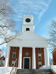 In 1812, funds were raised in Amherst for a secondary school, Amherst Academy; it opened December 1814.[14] The academy incorporated in 1816,[15] and eventually counted among its students Emily Dickinson, Sylvester Graham, and Mary Lyon (founder of Mount Holyoke College).[16] The institution was named after the town, which in turn had been named after Jeffery, Lord Amherst, a veteran from the Seven Years' War and later commanding general of the British forces in North America. On November 18, 1817, a project was adopted at the Academy to raise funds for the free instruction of "indigent young men of promising talents and hopeful piety, who shall manifest a desire to obtain a liberal education with a sole view to the Christian ministry".[17] This required a substantial investment from benefactors.[18]