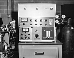 The invention of gas chromatography is generally attributed to Anthony T. James and Archer J.P. Martin.[6][7] Their gas chromatograph used partition chromatography as the separating principle, rather than adsorption chromatography. The popularity of gas chromatography quickly rose after the development of the flame ionization detector.[8] Martin and another one of their colleagues, Richard Synge, with whom he shared the 1952 Nobel Prize in Chemistry, had noted in an earlier paper[9] that chromatography might also be used to separate gases. Synge pursued other work while Martin continued his work with James.