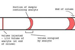 The real chromatographic analysis starts with the introduction of the sample onto the column. The development of capillary gas chromatography resulted in many practical problems with the injection technique. The technique of on-column injection, often used with packed columns, is usually not possible with capillary columns. In the injection system in the capillary gas chromatograph the amount injected should not overload the column and the width of the injected plug should be small compared to the spreading due to the chromatographic process. Failure to comply with this latter requirement will reduce the separation capability of the column. As a general rule, the volume injected, Vinj, and the volume of the detector cell, Vdet, should be about 1/10 of the volume occupied by the portion of sample containing the molecules of interest (analytes) when they exit the column.