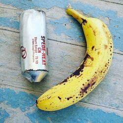 Bananas must be transported over long distances from the tropics to world markets.[92] To obtain maximum shelf life, harvest comes before the fruit is mature. The fruit requires careful handling, rapid transport to ports, cooling, and refrigerated shipping. The goal is to prevent the bananas from producing their natural ripening agent, ethylene. This technology allows storage and transport for 3–4 weeks at 13 °C (55 °F). On arrival, bananas are held at about 17 °C (63 °F) and treated with a low concentration of ethylene. After a few days, the fruit begins to ripen and is distributed for final sale. Ripe bananas can be held for a few days at home. If bananas are too green, they can be put in a brown paper bag with an apple or tomato overnight to speed up the ripening process.[93]