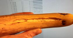 Glucanase and two other proteins specific to bananas were found in dental calculus from the early Iron Age (12th century BCE) Philistines in Tel Erani in the southern Levant.[66]