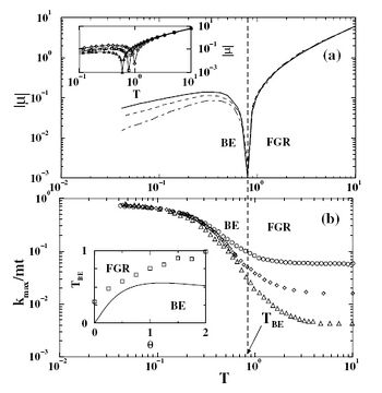 However, the existence of the Bose–Einstein condensation or the fit-get-rich phase does not depend on the temperature or β of the system but depends only on the functional form of the fitness distribution ρ(ν) of the system. In the end, β falls out of all topologically important quantities. In fact, it can be shown that Bose–Einstein condensation exists in the fitness model even without mapping to a Bose gas.[4] A similar gelation can be seen in models with superlinear preferential attachment,[5] however, it is not clear whether this is an accident or a deeper connection lies between this and the fitness model.