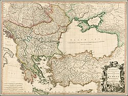 Rumelia (Ottoman Turkish: روم ايلى, romanized: Rum İli, ;[lower-alpha 1] Turkish: Rumeli; Greek: Ρωμυλία) was the name of a historical region in Southeastern Europe that was administered by the Ottoman Empire, roughly corresponding to the Balkans. In its wider sense, it was used to refer to all Ottoman possessions and vassals in Europe. These would later be geopolitically classified as "the Balkans", with the general exception of Ottoman Hungary.[1] During the period of its existence, it was more often known in English as Turkey in Europe.