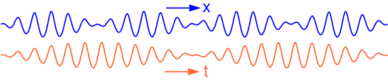 Wave groups can only be discerned in case of a narrow-banded signal, with the wave-number difference k1 − k2 small compared to the mean wave number ½ (k1 + k2).