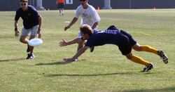 Ultimate (also called Ultimate Frisbee) is a competitive non-contact team sport. The object of the game is to score points by passing the disc to a team member in the opposing team's end zone. Players may not run while holding the disc. Catching is done with one hand or both hands on the rim or with hands simultaneously on the top and bottom, sometimes referred to as a clap-catch. When one-hand catching on the rim, care must always be taken in hand placement and making sure to catch on the correct side of the disc, according to which way the disc is spinning. One side will tend to spin out of your hand, while the other side will spin into your hand, making for a more secure catch. Many players avoid this problem by catching with both hands when possible. The most popular throws used in a game of ultimate are backhand, sidearm/forehand, hammer and scoober. Being a deep threat, with multiple throwing techniques and the ability to pass the disc before the defense has had a chance to reset, is always optimal. Some players use a throw and catch freestyle practice to help improve their ultimate handling skills.[9] The game was invented in 1968 as an evening pastime by Jared Kass. Ultimate is distinguished by its Spirit of the Game - the principles of fair play, sportsmanship, and the joy of play. USA Ultimate and Ultimate Canada are the rules and sanctioning organizations for ultimate in the US and Canada. The American Ultimate Disc League (AUDL) and Major League Ultimate (MLU) are the first semi-professional ultimate leagues. The Major League Ultimate (MLU) ceased operation on December 21, 2016.[10]