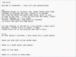 Colossal Cave Adventure, created in 1975 by Will Crowther on a DEC PDP-10 computer, was the first widely used adventure game. The game was significantly expanded in 1976 by Don Woods. Also called Adventure, it contained many D&D features and references, including a computer controlled dungeon master.[11][12]