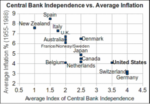 In the 1990s there was a trend towards increasing the independence of central banks as a way of improving long-term economic performance.[80] While a large volume of economic research has been done to define the relationship between central bank independence and economic performance, the results are ambiguous.[81]