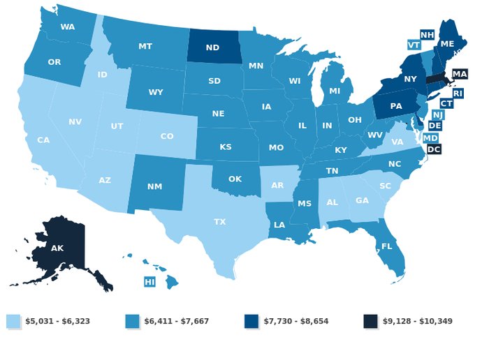 | Massachusetts | $11,721 | 7% | $11,277 | 6% | ||