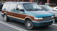 The second-generation Chrysler minivans are a series of minivans that were manufactured and marketed by Chrysler Corporation in North America and Europe from 1991 to 1995. Officially designated the AS platform by Chrysler, the second-generation minivans were an extensive revision of the first-generation chassis and body. As before, passenger and cargo configurations were sold by Dodge, Plymouth, and Chrysler divisions. The first minivans offered with driver-side airbags (in 1991) and with optional integrated child safety seats (in 1992), the second-generation Chrysler minivans offered all-wheel drive as an option for the first time; a manual transmission would be offered for the last time in the North American market.[2]