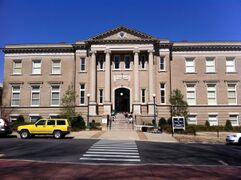 From 1929 to 1930, architect Frank P. Gates designed 18 buildings on campus, mostly in Georgian Revival architectural style, including (Old) University High School, Barr Hall, Bondurant Hall, Farley Hall (also known as Lamar Hall), Faulkner Hall, and Wesley Knight Field House.[82][83] During the 1930s, the many building projects at the campus were largely funded by the Public Works Administration and other federal entities.[84] Among the notable buildings built in this period is the dual-domed Kennon Observatory (1939).[85]