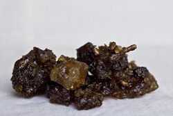 Bdellium is used in perfumery, as incense, and in traditional medicine.[4] It is an adulterant of the more costly myrrh.[citation needed]