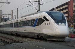 The CRH6 is a regional/commuter high-speed train of the People's Republic of China. It is designed by CRRC Qingdao Sifang and will be manufactured by CRRC Nanjing Puzhen at its subsidiary, the CRRC Guangdong Jiangmen Factory.[1] Unlike other CRH types, most CRH6 using costume train name instead, only very few CRH6 using Hexie (simplified Chinese: 和谐号; traditional Chinese: 和諧號; pinyin: Héxié Hào; literally: "Harmony") as train name.