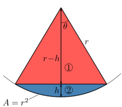 where [math]\displaystyle{ A }[/math] is the spherical surface area and [math]\displaystyle{ r }[/math] is the radius of the considered sphere.