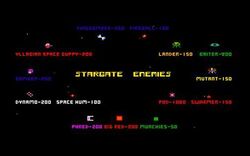 Stargate is a side-scrolling shooter game released for arcades in 1981 by Williams Electronics. Created by Eugene Jarvis and Larry DeMar, it is a sequel to Defender which was released earlier in the year. It was the first of only three productions from Vid Kidz, an independent development house formed by Jarvis and DeMar. Some of home ports of Stargate were renamed to Defender II for legal reasons.