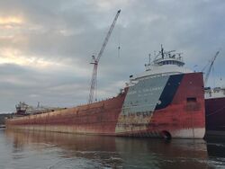 SS Col. James M. Schoonmaker is a former Cleveland-Cliffs Iron Company vessel that sailed from 1911 to 1980. She was originally owned by the Shenango Furnace Company, but renamed the Willis B. Boyer under Cleveland Cliffs ownership. Col. James M. Schoonmaker was the largest bulk freighter in the world when commissioned. In one of the most ambitious Great Lakes ship restorations to date, Col. James M. Schoonmaker was re-christened July 1, 2011, on the 100th anniversary of the ship's launching in Toledo.[31] She was open to the public for many years as a museum at International Park in Toledo, Ohio but was moved October 27, 2012, to a location downriver, next to the new home of the National Museum of the Great Lakes. She reopened to the public in Spring 2014, when the museum opened.[32]