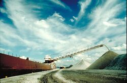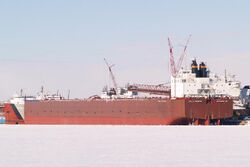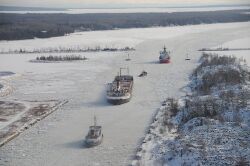 Since the late 19th century, lakers have carried bulk cargoes of materials such as limestone, iron ore, grain, coal, or salt from the mines and fields of the upper Great Lakes to the populous industrial areas farther east. The 63 commercial ports handled 173 million tons of cargo in 2006.[3] Because of winter ice on the lakes, the navigation season is not usually year-round. The Soo Locks and Welland Canal close from mid-January to late March, when most boats are laid up for maintenance. Crew members spend these months ashore.