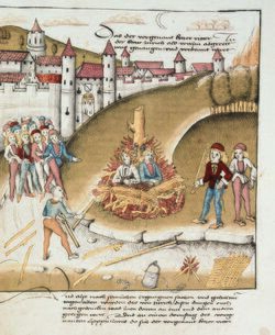 The earliest known execution for sodomy was recorded in the annals of the city of Basel in 1277. The mention is only one sentence: "King Rudolph burned Lord Haspisperch for the vice of sodomy." The executed was an obscure member of the German-Swiss aristocracy; it is unknown if there was a political motivation behind the execution.[20]