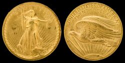 Article I, Section 8 of the U.S. Constitution provides that Congress has the power "[t]o coin money."[7] Laws implementing this power are currently codified in Title 31 of the U.S. Code, under Section 5112, which prescribes the forms in which the United States dollars should be issued.[8] These coins are both designated in the section as "legal tender" in payment of debts.[8] The Sacagawea dollar is one example of the copper alloy dollar, in contrast to the American Silver Eagle which is pure silver. Section 5112 also provides for the minting and issuance of other coins, which have values ranging from one cent (U.S. Penny) to 100 dollars.[8] These other coins are more fully described in Coins of the United States dollar.