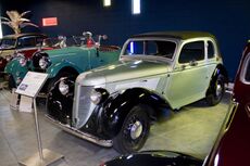 The front-wheel-drive Amilcar Compound was technically advanced in design for its era, featuring a monocoque frame made of a light alloy and independent suspension all around. Its engine at launch was a four-cylinder side-valve unit of 1185 cc.[3] The Compound's ambitious use of aluminium in its body structure, and its front-wheel-drive configuration, meant that production got off to a slow start, and although it was launched in October 1937, 584 of the 681 passenger cars produced date only from 1939, with a further 64 produced during the early months of 1940, before the German invasion of May/June 1940 effectively ended civilian automobile production in the Paris region.[4] Production prototypes for an upgraded Compound with an OHV 1340 cc engine were running by the summer of 1939, and this version was scheduled for an October launch at the 1939 Paris Motor Show, but the motor show was cancelled and the launch was postponed – as matters turned out indefinitely – due to the intervention of war which France (and Britain) declared against Germany in early September 1939.[4]