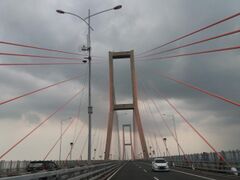 Left-hand traffic on Suramadu Bridge in Indonesia