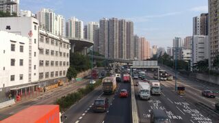 Left-hand traffic on Kwun Tong Road in Hong Kong, China
