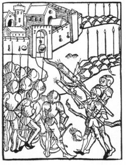 The pistol originates in the 16th century, when early handguns were produced in Europe. The English word was introduced in c. 1570 from the Middle French pistolet (c. 1550). The etymology of the French word pistolet is disputed. It may be from a Czech word for early hand cannons, píšťala ("whistle" or "pipe"), used in the Hussite Wars during the 1420s. The Czech word was adopted in German as pitschale, pitschole, petsole, and variants.[12][13] Alternatively the word originated from Italian pistolese, after Pistoia, a city renowned for Renaissance-era gunsmithing, where hand-held guns (designed to be fired from horseback) were first produced in the 1540s.[14] However, the use of the word as a designation of a gun is not documented before 1605 in Italy, long after it was used in French and German.[citation needed]