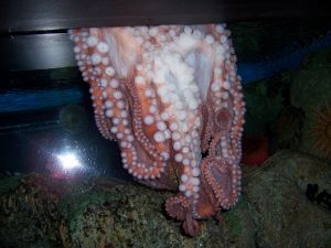 Octopuses are also quite strong for their size. Octopuses kept as pets have been known to open the covers of their aquariums and survive for a time in the air in order to get to a nearby feeder tank and gorge themselves on the fish there. They have also been known to catch and kill some species of sharks.