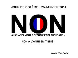 Camus's tract for his 2014 "day of anger" demonstration against the "great replacement": "No to the change of people and of civilization, no to antisemitism"