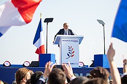 In June 2019, journalist and author Éric Zemmour pushed the concept in comparison to the Kosovo War, claiming "In 1900, there were 90% Serbs and 10% Muslims in Kosovo, in 1990 there were 90% Muslims and 10% Serbs, then there was war and the independence of Kosovo".[96] Zemmour, author of The French Suicide, has repeatedly described "the progressive replacement, over a few decades, of the historic population of our country by immigrants, the vast majority of them non-European".[97] Later that month, Marion Maréchal joined Zemmour in invoking the Great Replacement in relation to the Balkan region, stating "I do not want my France to become Kosovo" and declared that the changing demographics of France "threatens us" ("nous menace") and that this was increasingly clear.[96] Zemmour ran for president in 2022 and continued to extensively promote the theory during his campaign.[98] He finished in fourth place in the first round of the election, taking 7,07% of the vote.[99]
