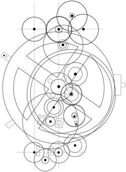 The level of Hellenistic achievement in astronomy and engineering is impressively shown by the Antikythera mechanism (150–100 BCE). It is a 37-gear mechanical computer which computed the motions of the Sun and Moon, including lunar and solar eclipses predicted on the basis of astronomical periods believed to have been learned from the Babylonians.[26] Devices of this sort are not known to have been engineered again until the 10th century, when a simpler eight-geared luni-solar calculator incorporated into an astrolabe was described by Persian scholar Al-Biruni.[27][failed verification] Similarly complex devices were also developed by other Muslim engineers and astronomers during the Middle Ages.[26]