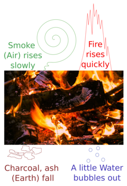 Heraclitus of Ephesus (about 535–475 BC), then maintained that change, rather than any substance was fundamental, although the element fire seemed to play a central role in this process.[8] Finally, Empedocles of Acragas (490–430 BC), seems to have combined the views of his predecessors, asserting that there are four elements (Earth, Water, Air and Fire) which produce change by mixing and separating under the influence of two opposing "forces" that he called Love and Strife.[9]