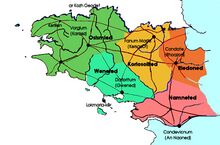 Le Câtillon Hoard found in 1957 of over 2,500 Celtic coins representing tribes in Armorica and Gaul as well as in Southern Britain. Tribes include Coriosolites, Osismii, Aulerci, Cenomani, Baiocasses, Durotriges, Redones, Unelli, Veneti, Ambiani, Bituriges Cubi and Volcae Arecomici.[24]