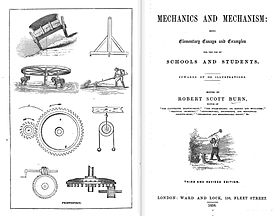 The 1853 Mechanics and Mechanism, is an illustrated educational work on mechanics and mechanism, published as part of the publishers Popular Educational Series. About the importance of this work, Burn explained in the preface of the first edition, citing himself from elsewhere: