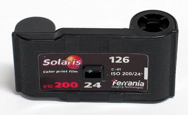Ferrania in Italy was the last factory producing 126 film. They marketed an ISO 200 colour print film under their Solaris brand. The last scheduled production run took place in April 2007, but an unscheduled production run in late 2007 surprised industry observers and raised hopes that it had not actually been discontinued.[11] Ferrania's subsequent bankruptcy meant that there was no longer any large-scale factory source for 126 film.
