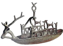 There is reason to believe that bronze work developed inside China apart from outside influence.[47] However, the discovery of Europoid mummies in Xinjiang has caused some scholars such as Johan Gunnar Andersson, Jan Romgard, and An Zhimin to suggest a possible route of transmission from the West eastwards. According to An Zhimin, "It can be imagined that initially, bronze and iron technology took its rise in West Asia, first influenced the Xinjiang region, and then reached the Yellow River valley, providing external impetus for the rise of the Shang and Zhou civilizations." According to Jan Romgard, "bronze and iron tools seems to have traveled from west to east as well as the use of wheeled wagons and the domestication of the horse." There are also possible links to Seima-Turbino culture, "a transcultural complex across northern Eurasia," the Eurasian steppe, and the Urals.[48] However, the oldest bronze objects found in China so far were discovered at the Majiayao site in Gansu rather than at Xinjiang.[49]
