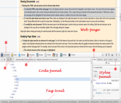In addition to selecting and editing, the HTML elements panels will usually also display properties of the DOM object, such as display dimension, and Cascading- style sheet properties.[20]
