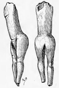 Most date from the Gravettian period (26,000–21,000 years ago).[1] However, findings are not limited to this period; for example, the Venus of Hohle Fels dates back at least 35,000 years to the Aurignacian era, and the Venus of Monruz dates back about 11,000 years to the Magdalenian. Such figurines were carved from soft stone (such as steatite, calcite or limestone), bone or ivory, or formed of clay and fired. The latter are among the oldest ceramics known to historians. In total, over 200 such figurines are known;[2] virtually all of modest size, between about 3 cm and 40 cm in height.[3] These figurines are recognised as some of the earliest works of prehistoric art.